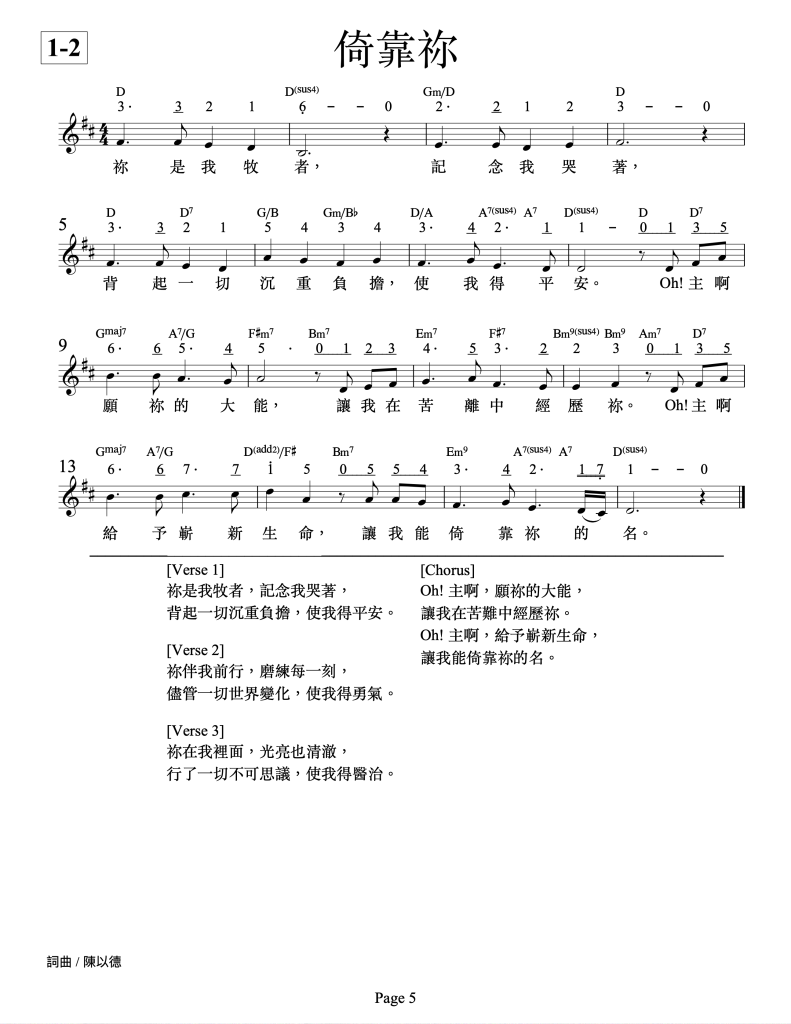1-2. 《倚靠祢》- Lean on Your Name Posted byyidechen23 Nov 202426 Dec 2025Posted inUncategorized ► Listen on YouTube 歡迎訂閱分享我們的YouTube頻道 ► More Hymns聽更多詩歌 Welcome to share Yi-De's music, performance, and article: Click to share on X (Opens in new window) X Click to share on Facebook (Opens in new window) Facebook Like Loading... Related Published by yidechen Yi-De Chen, composer View more posts