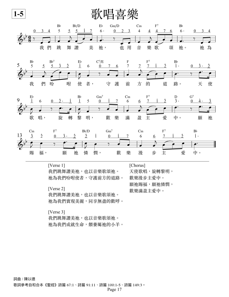 1-6. 《歌唱喜樂》- Singing with Joyfulness Posted byyidechen23 Nov 20247 Dec 2025Posted inUncategorized 🎧 More Hymns ► Listen聽更多詩歌 ► PDF Score樂譜下載 Welcome to share Yi-De's music, performance, and article: Click to share on X (Opens in new window) X Click to share on Facebook (Opens in new window) Facebook Like Loading... Related Published by yidechen Yi-De Chen, composer View more posts