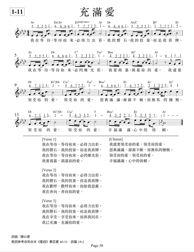 1-11. 《充滿愛》- Full of Love Posted byyidechen26 Nov 202426 Dec 2025Posted inUncategorized 歡迎訂閱分享我們的YouTube頻道 ► More Hymns聽更多詩歌 Welcome to share Yi-De's music, performance, and article: Click to share on X (Opens in new window) X Click to share on Facebook (Opens in new window) Facebook Like Loading... Related Published by yidechen Yi-De Chen, composer View more posts