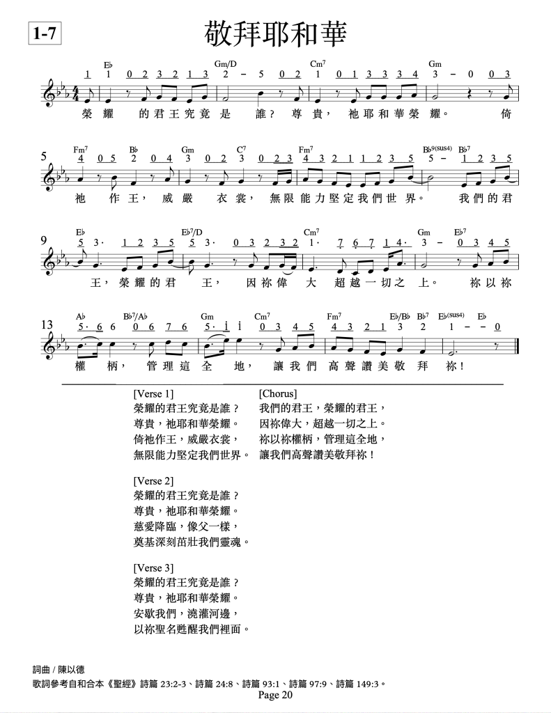 1-7. 《敬拜耶和華》- Worship the Lord Posted byyidechen26 Nov 20248 Dec 2025Posted inUncategorized ► Listen on YouTube 🎧 More Hymns ► Listen聽更多詩歌 ► PDF Score樂譜下載 Welcome to share Yi-De's music, performance, and article: Click to share on X (Opens in new window) X Click to share on Facebook (Opens in new window) Facebook Like Loading... Related Published by yidechen Yi-De Chen, composer View more posts